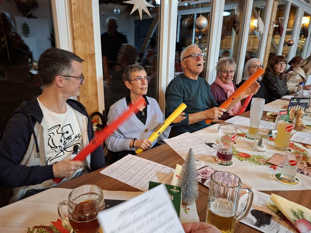 Die ausgelassene Stimmung lockte auch den Nikolaus und seinen Helfer an. Dieser wusste über jeden Sänger eine kleine Geschichte und brachte ein Geschenk dar. Vielen Dank an alle für den kurzweiligen Abend.