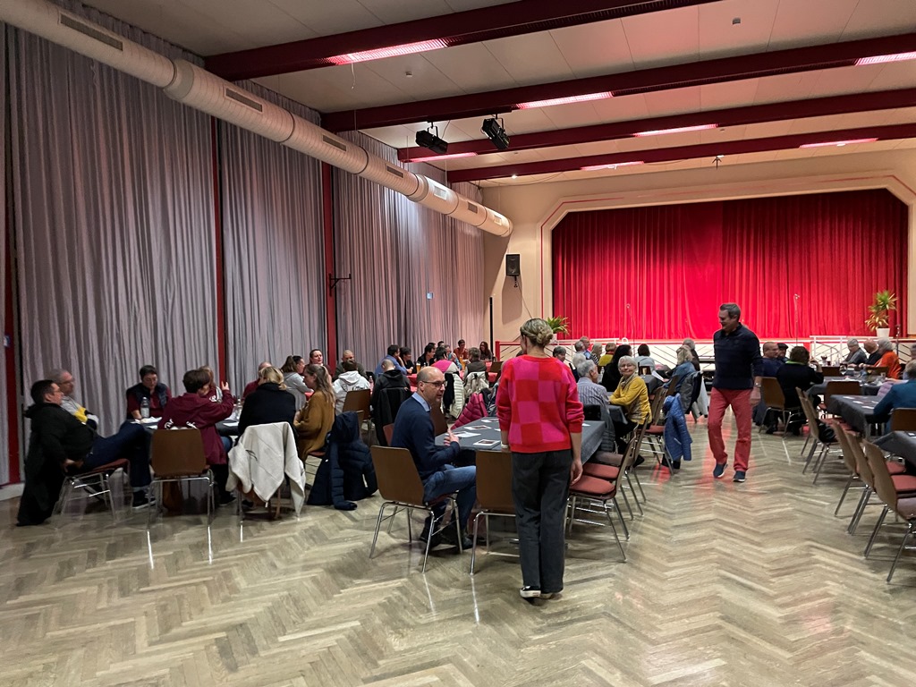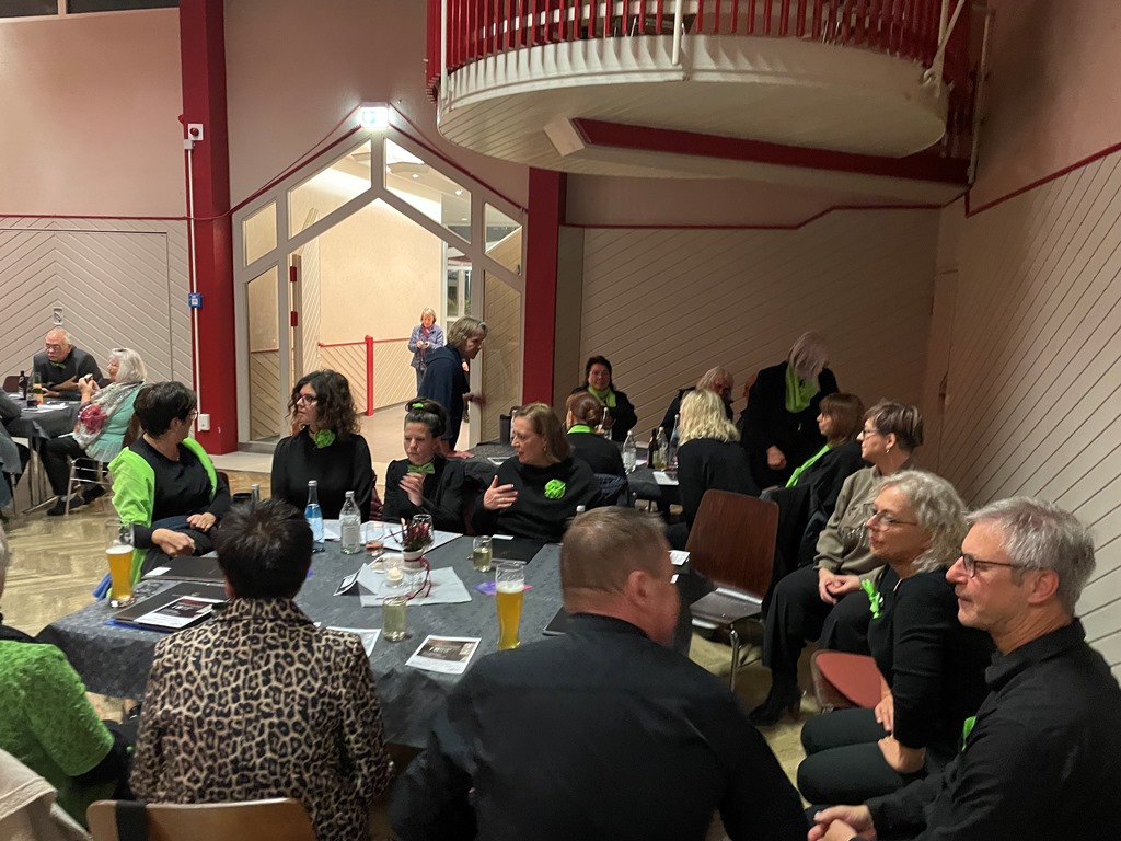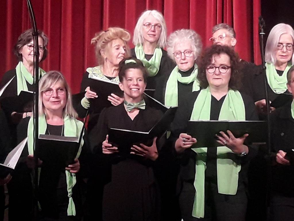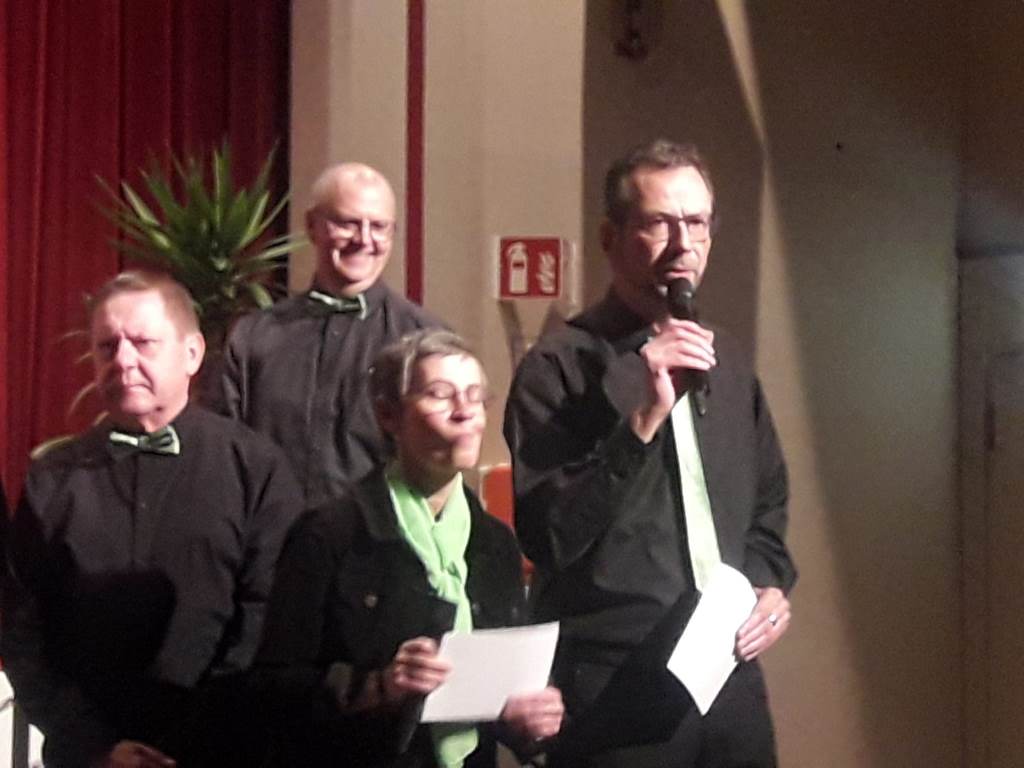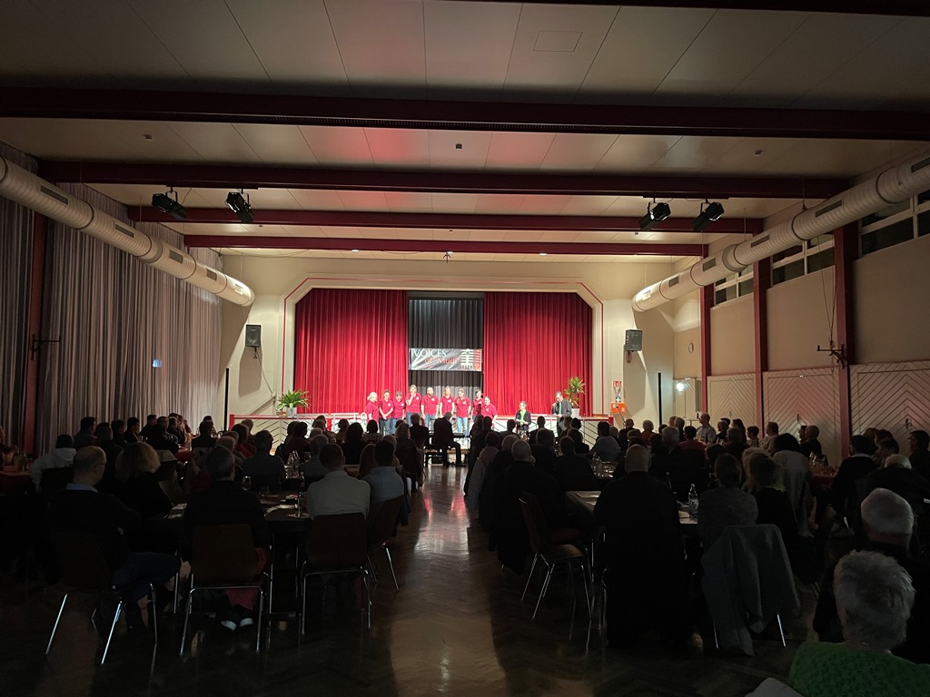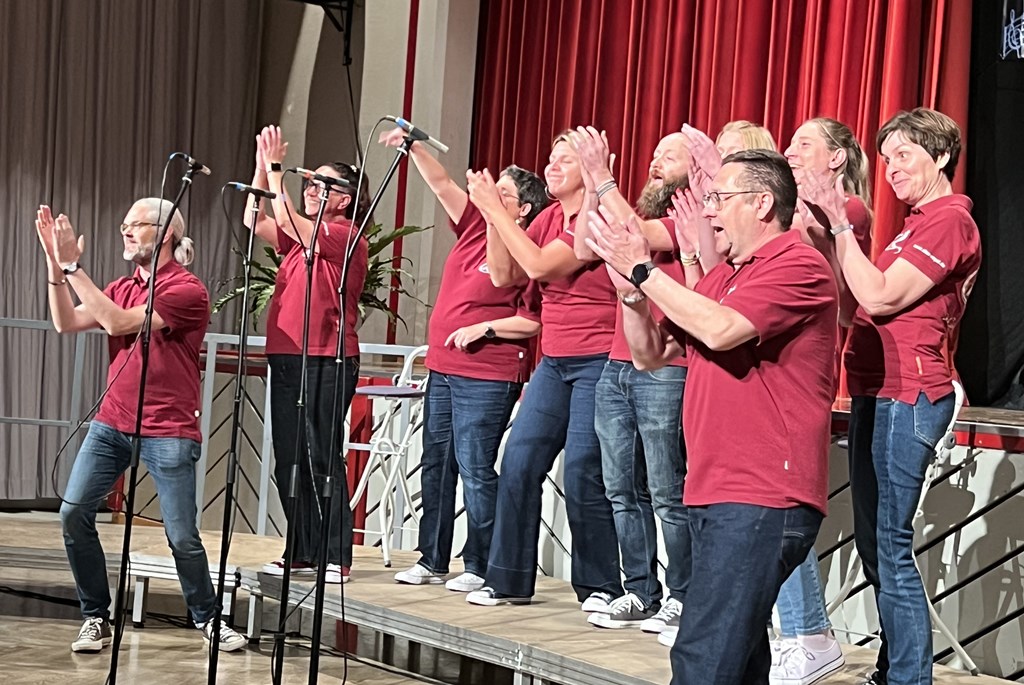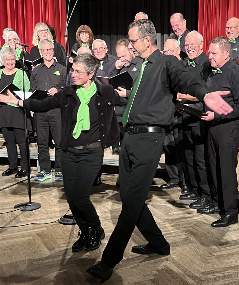 Die Voices of Mudi eröffneten „ihren Taufabend“ mit dem fröhlichen und mehrstimmigen „Calypso“, sangen „Heute hier, morgen dort“ und ließen „Den kleinen grünen Kaktus“ nicht nur stechen, sondern regelrecht aufblühen. Doch bevor Anja Henn und Uwe Lenz tänzerisch den klassischen Rumba „Somethin‘ Stupid“ ankündigten und die Mudauer Sängerinnen und Sänger nach „California Dreaming“ noch hören ließen, wie es „Hinterm Horizont“ weitergeht, präsentierte „die kleine Besetzung“ des „Chor Royal“ ohne Chorleiter und ohne Notenbücher, dafür mit unglaublichen Stimmen und viel Schwung ein Udo-Jürgens-Medley mit bekannten Songs wie „Ein ehrenwertes Haus“, „Vielen Dank für die Blumen“ und „Ich war noch niemals in New York“. Temperamentvoll holten sie das Publikum mit ins Geschehen bei „Eine neue Liebe ist wie ein neues Leben“ und schlossen ihren ersten Part mit dem sehr gefühlvollen „Don’t stop believin“. „Vielen Dank für die musikalische Reise, auf die ihr uns mitnehmt“ lobten Bürgermeister und Ortsvorsteher bereits nach dem ersten kurzweiligen Konzertteil, der deutlich gezeigt hatte, wie viel Spaß die Sängerinnen und Sänger bei ihren Präsentationen haben. Ein besonderes Dankeschön richteten sie dabei an Dirigent Gerhard Bönig.
