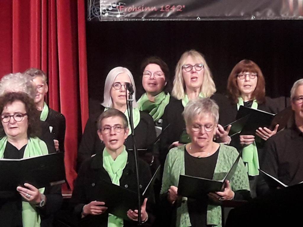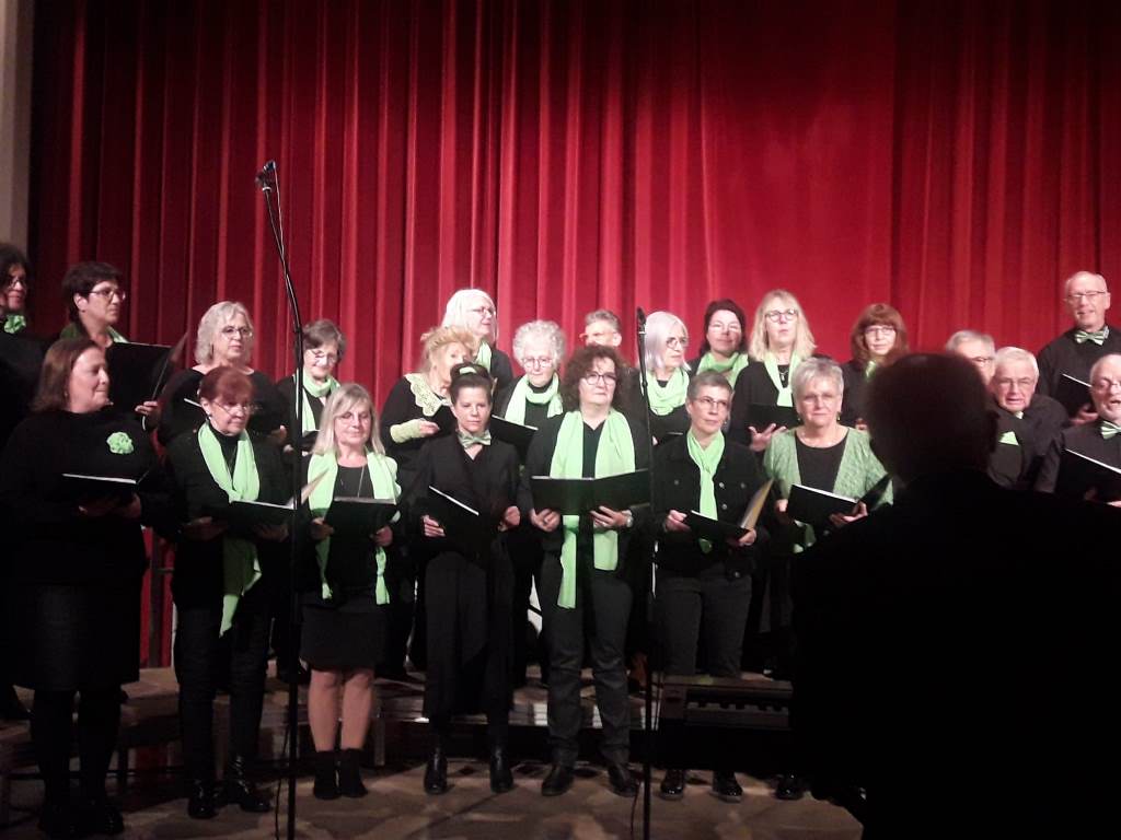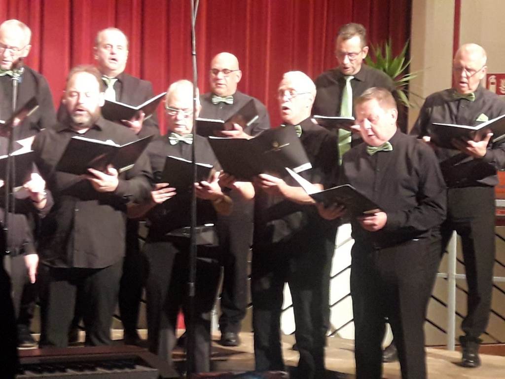 Nach diesem Hardrock und tosendem Beifall für die Mosbacher empfahlen die „Voices of Mudi“ sehr entspannt „Probier’s mal mit Gemütlichkeit“ – unvergessen aus dem Dschungelbuch. Weiter wünschten sie sich, dass ihr Publikum nach Ende des Konzerts „Go with a Song in Your Heart“, um eigentlich mit dem Jackson-Song „Heal the World“ nach einem zweiten Herbstgedicht unter dem Titel „Herbst“ von Uwe Lenz den Schlusspunkt unter das Konzert zu setzen. Die vom Publikum lautstark geforderte Zugabe versprach „You‘ll never walk alone!“. Ein Versprechen, das die Chormitglieder auch jedem Neuzugang bei den Proben „immer dienstags 20 Uhr im Pfarrsaal“ geben. Wolfgang Radauscher, 1. Vorsitzender des Gesangvereins „Frohsinn 1842“ Mudau hatte den Abend verbal eröffnet und schloss ihn mit einem Dank an alle, die zum Gelingen beigetragen hatten – die „Vorbereiter“ im Saal, Sängerinnen und Sänger, Chorleiter Gerhard Benig, das Moderatoren-Team Anja Henn und Uwe Lenz, Chor „Royal“ und natürlich das begeisterungsfähige Publikum.